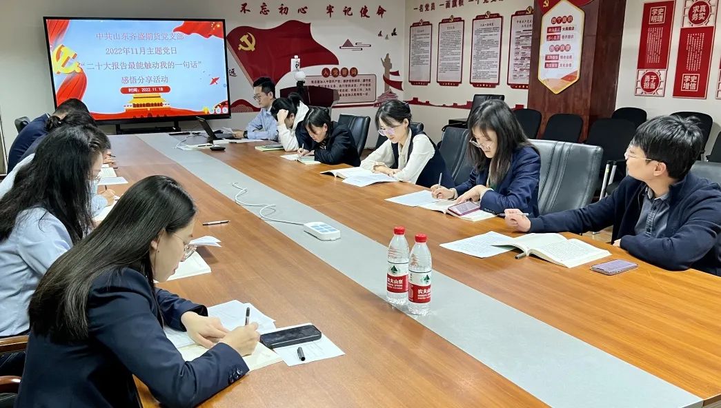 聽完各位黨員同志的感悟分享,齊盛期貨公司黨支部書記高軍對全體黨員提出了要求。高軍指出,要全面準確學習領會黨的二十大精神,堅持知行合一,貫徹落實好黨的二十大作出的重大決策部署,增強“四個意識”、堅定“四個自信”、做到“兩個維護”。要在集團黨委統(tǒng)一領導下,密切配合,把學習宣傳貫徹黨的二十大精神與加強領導班子建設和基層黨組織建設結合起來。