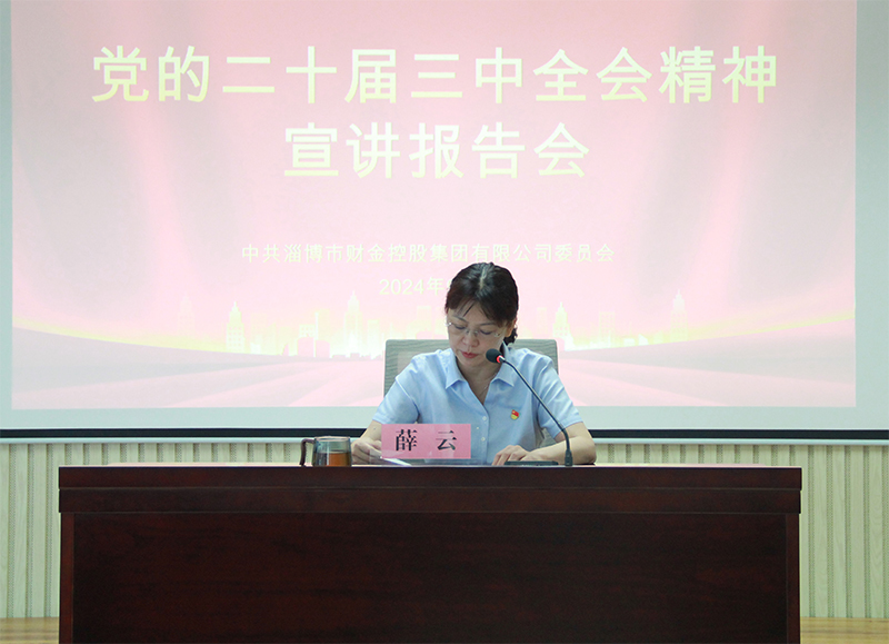 9月3日上午,市財金集團舉辦黨的二十屆三中全會精神宣講報告會。集團公司黨委班子成員、總監(jiān)、中層管理干部、子公司班子成員及全體黨員參會。會議由市紀委監(jiān)委駐市財金集團紀檢監(jiān)察組組長、黨委委員宋振江主持。會上傳達了中共淄博市委十三屆七次全會精神,集團公司黨委書記、董事長薛云作宣講報告。